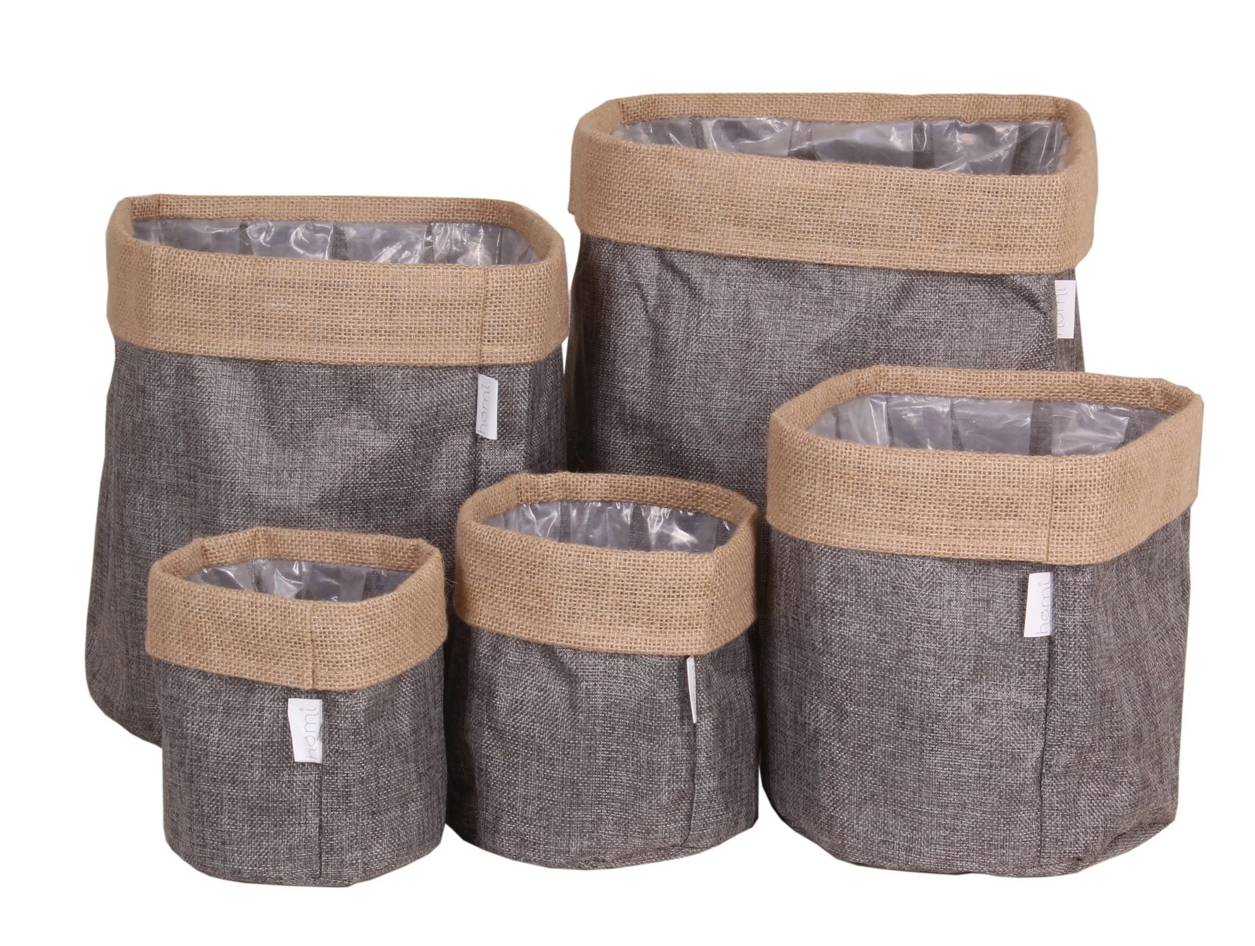 Highlights: Natürliche Jute-Optik, integrierter Feuchtigkeitsschutz, vielseitig als Übertopf oder Aufbewahrung nutzbar, platzsparend faltbar, dekoratives Wohnaccessoire.