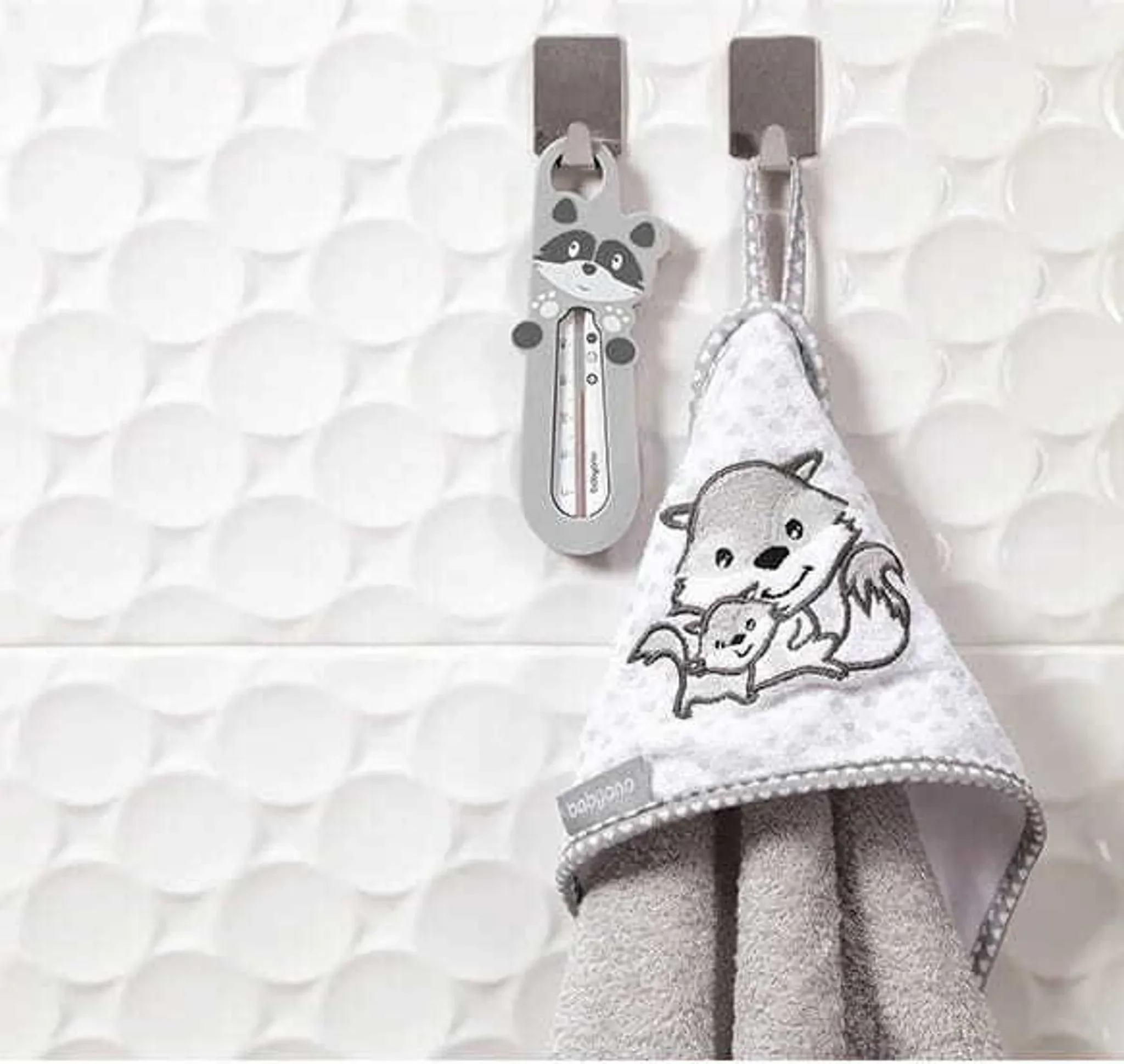 BabyOno Badethermometer – Waschbär, Grau