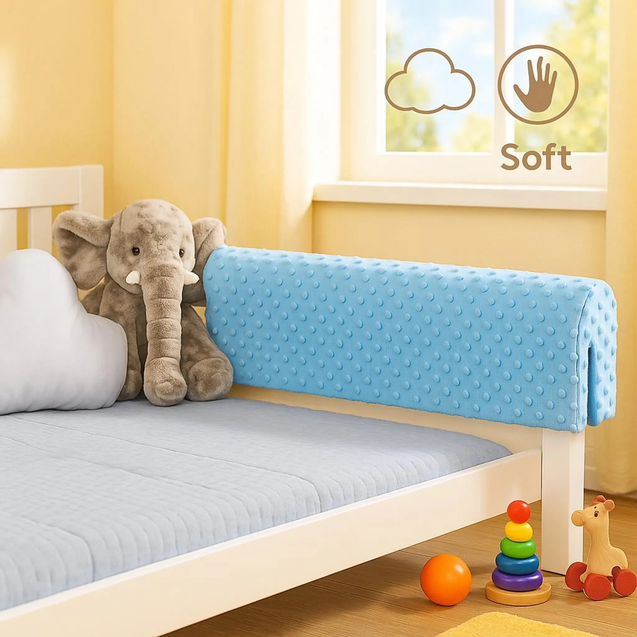 Dieser Bettkantenschutz schützt Kinder zuverlässig vor Zusammenstößen mit harten Bettkanten und bietet gleichzeitig eine angenehm weiche Oberfläche für komfortables Schlafen. Ideal für Baby- und Kinderbetten, Hochbetten und Gitterbetten.
