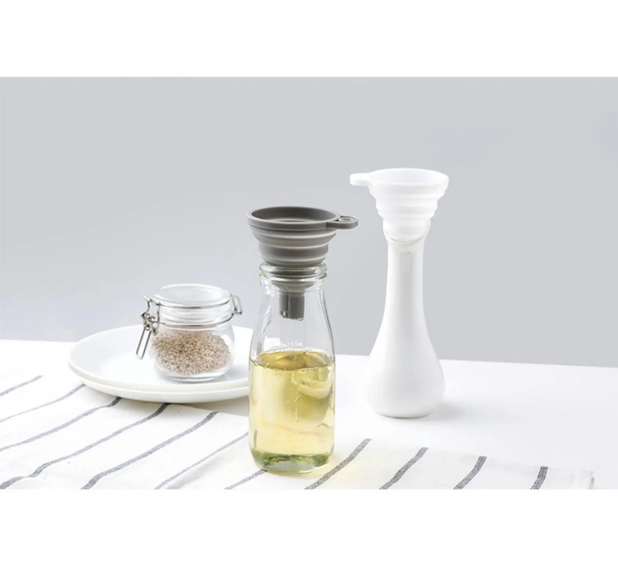 Faltbarer Silikontrichter – platzsparender Küchenhelfer in Hellgrau