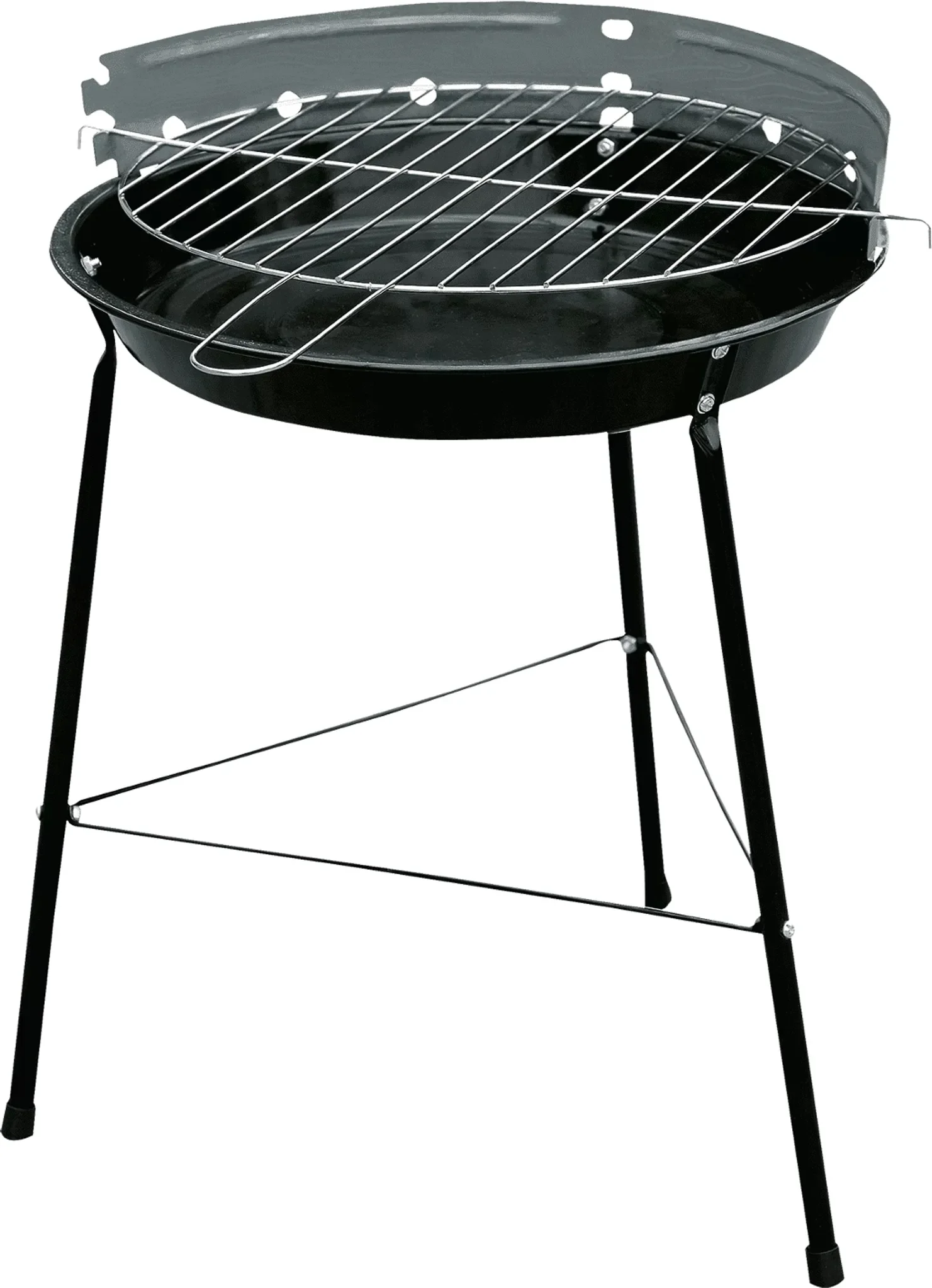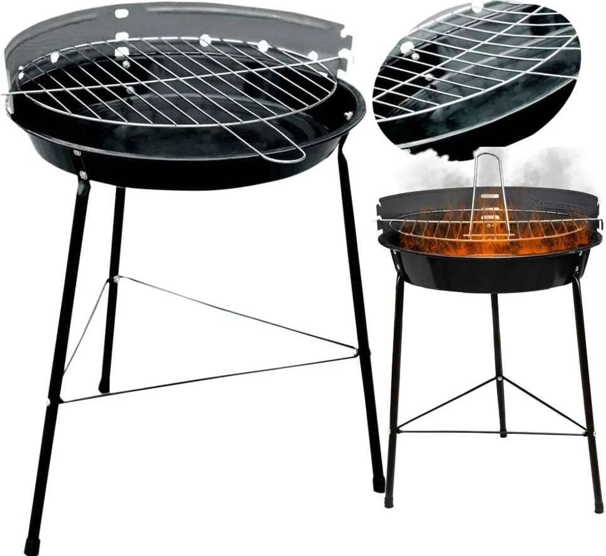 Klassischer runder Holzkohlegrill für den Garten oder Outdoor-Einsätze. Der Grill verfügt über dreieckige Beine für Stabilität und einen verchromten Rost mit 29 cm Durchmesser. Die dreistufige Höhenverstellung des Rosts ermöglicht flexibles Grillen von Fleisch, Gemüse oder Fisch.
