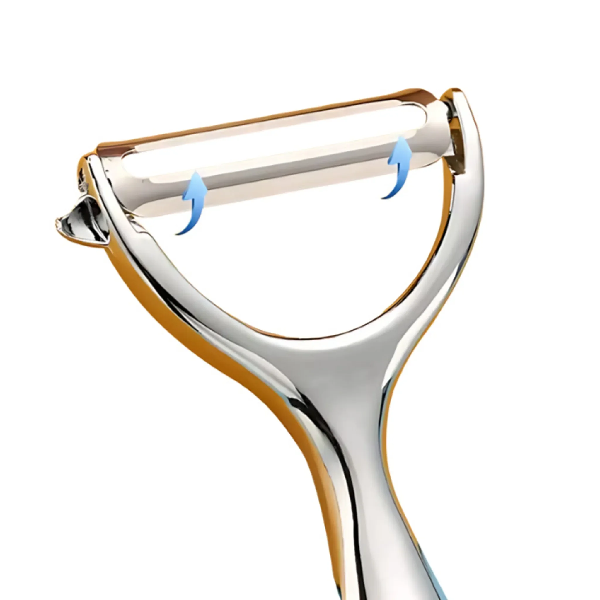 Dieser elegante Gemüseschäler aus rostfreiem Stahl ist ein unverzichtbares Küchenwerkzeug für den täglichen Einsatz. Die präzise geschliffene Klinge gleitet mühelos über Obst und Gemüse und ermöglicht sauberes Schälen mit minimalem Kraftaufwand.
