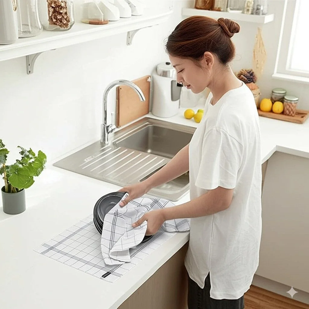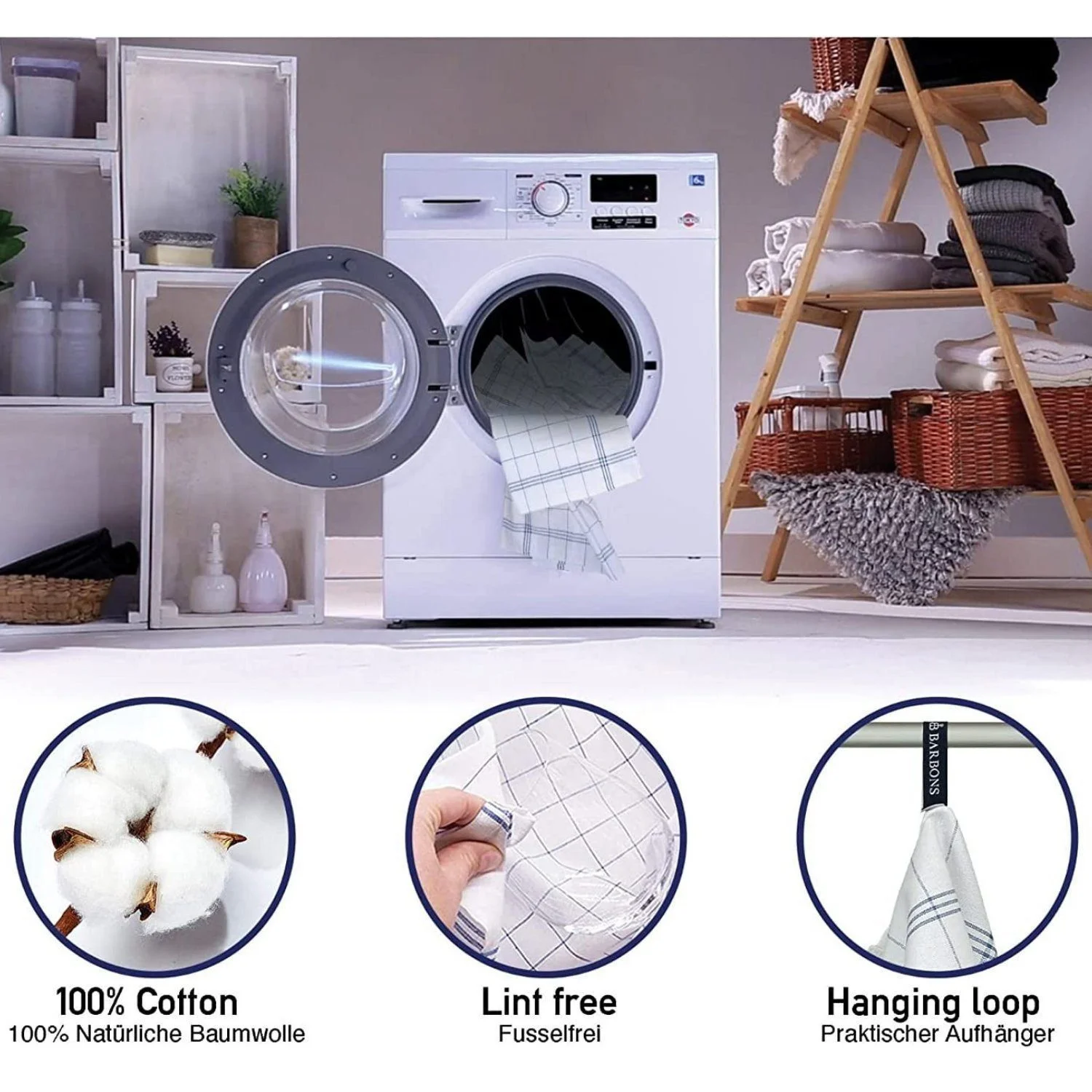 Dieses 10er-Set hochwertiger Geschirrtücher aus 100 % Baumwolle ist die zuverlässige Lösung für Küche und Haushalt. Die großzügige Größe von 50 × 70 cm eignet sich ideal zum Trocknen von Geschirr und Besteck sowie zum Abwischen von Arbeitsflächen.