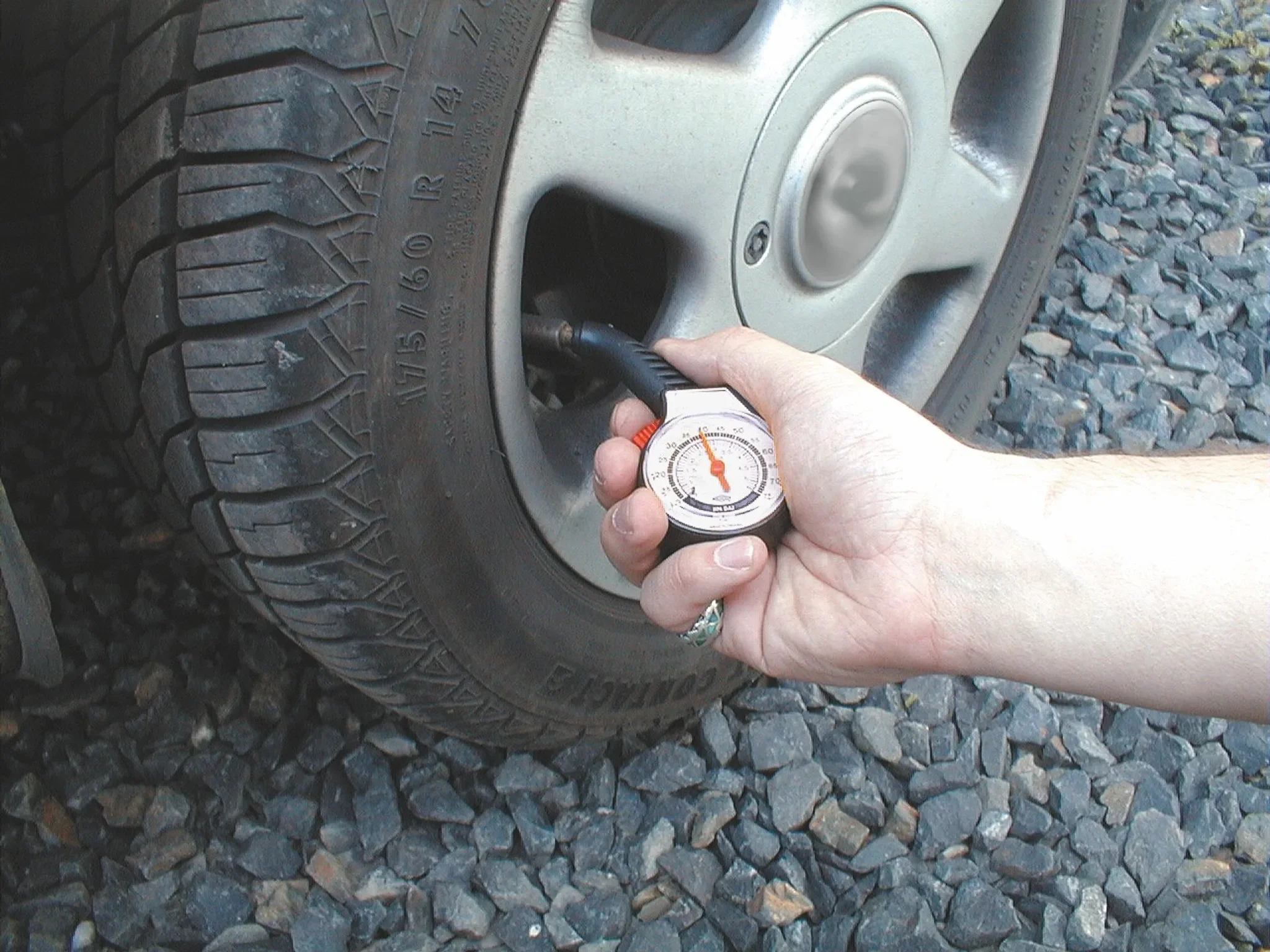 Die hervorgehobene Nadelanzeige erlaubt das mühelose Ablesen des Druckbereichs von 0,5 bis 5 Bar. Bitte nur bei kalten Reifen messen, um genaue Werte zu erhalten.