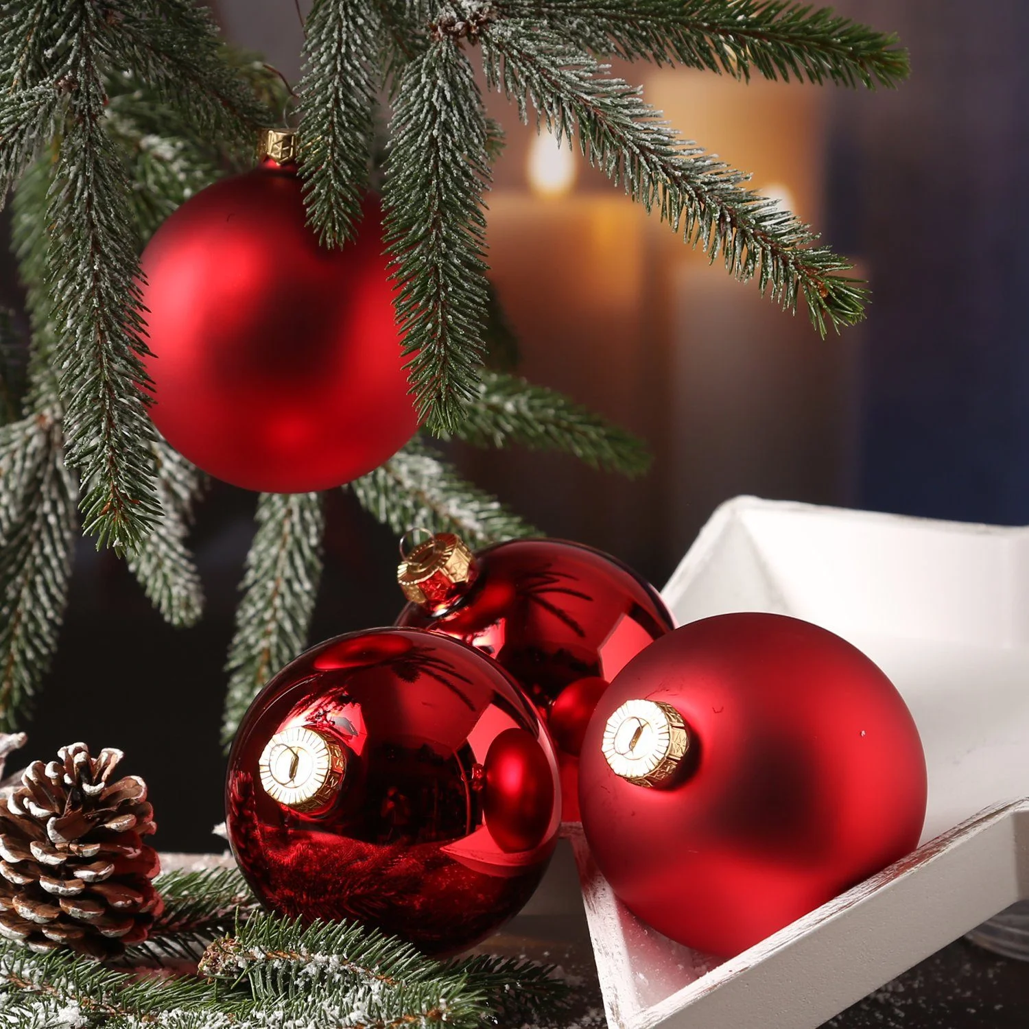 | Im Paket | 4 × Weihnachtsbaumkugeln in Rot |