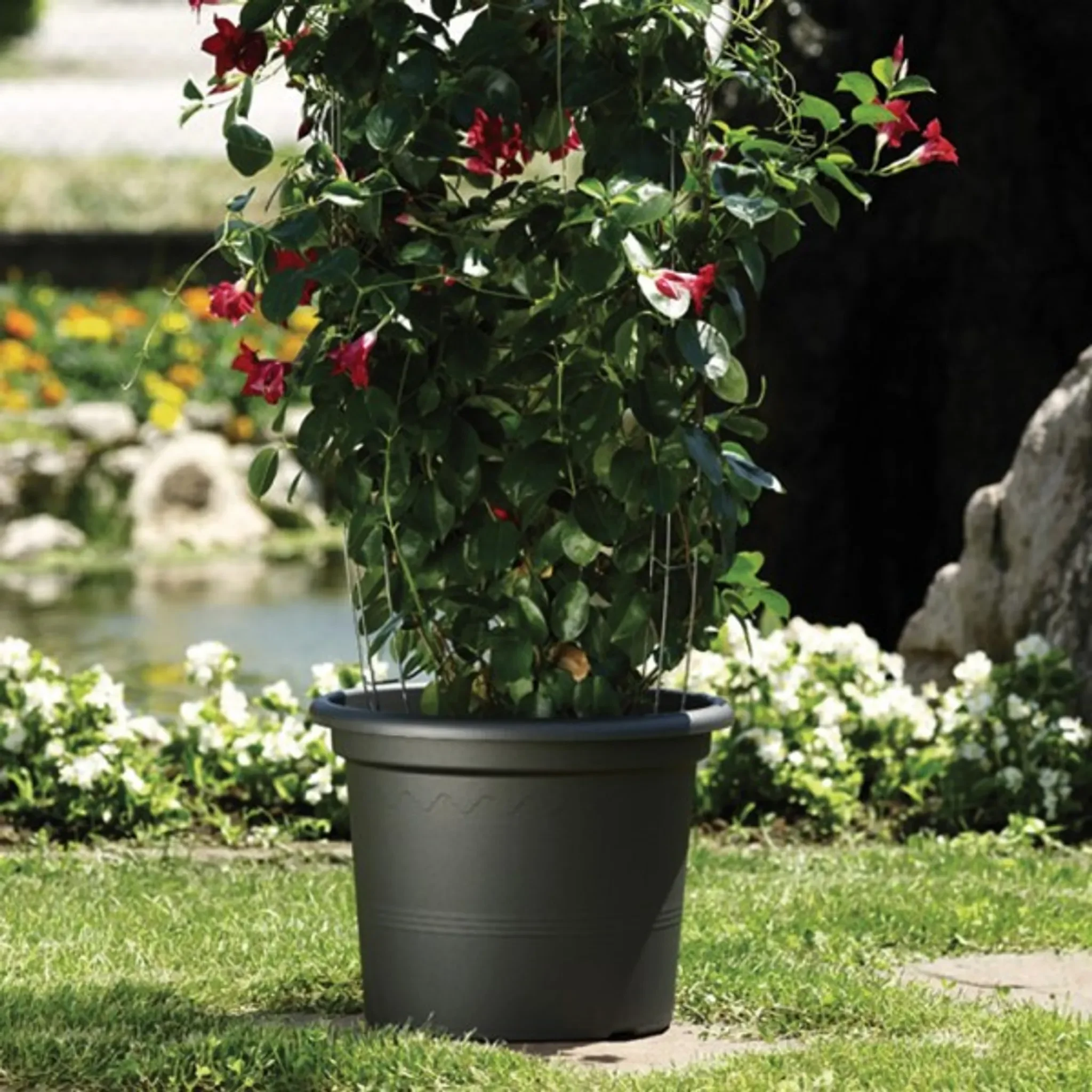 Highlights: Frostsicher bis -20 °C, UV-beständig, bruchsicher, voll recyclebar, langlebig und vielseitig für Garten, Balkon oder Terrasse einsetzbar.